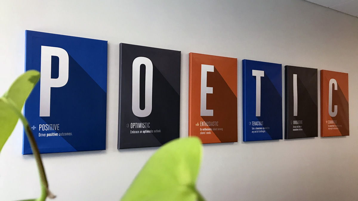 As the Senior Designer and only in-house designer at Intermarkets Inc., I had the rare pleasure of directing and designing some fun projects, one of which is this series of posters for the company's corporate DNA that were printed and mounted on 20 in. x 30 in. stretched canvas.